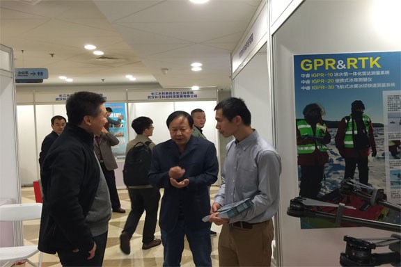 新技術(shù)成果裝備展示會(huì)場內(nèi),大連中睿科技發(fā)展有限公和中國水利水電科學(xué)研究院的聯(lián)合展位上,展出的冰水一體化雷達(dá)、無人機(jī)飛航測冰雷達(dá)和便攜式測冰雷達(dá)儀吸引了眾多與會(huì)代表參觀了解,詢問設(shè)備性能和技術(shù)指標(biāo),大連中睿科技發(fā)展有限公司副總經(jīng)理、陳潔博士熱情的為與會(huì)專家和代表做了詳細(xì)介紹和說明。